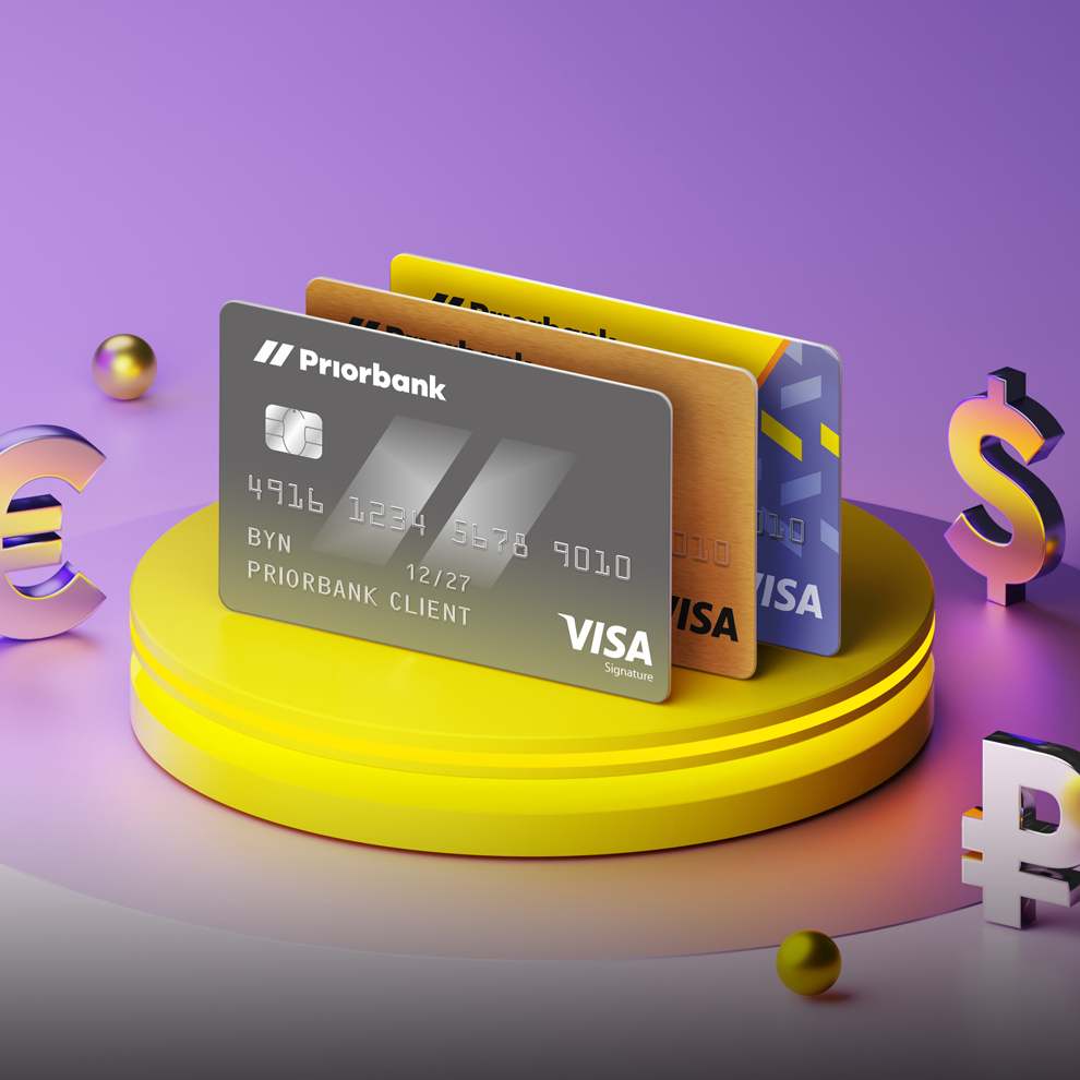 Снимайте любую сумму наличных в банкоматах Приорбанка без комиссии, а также в банкоматах других банков по всему миру согласно тарифов банка.